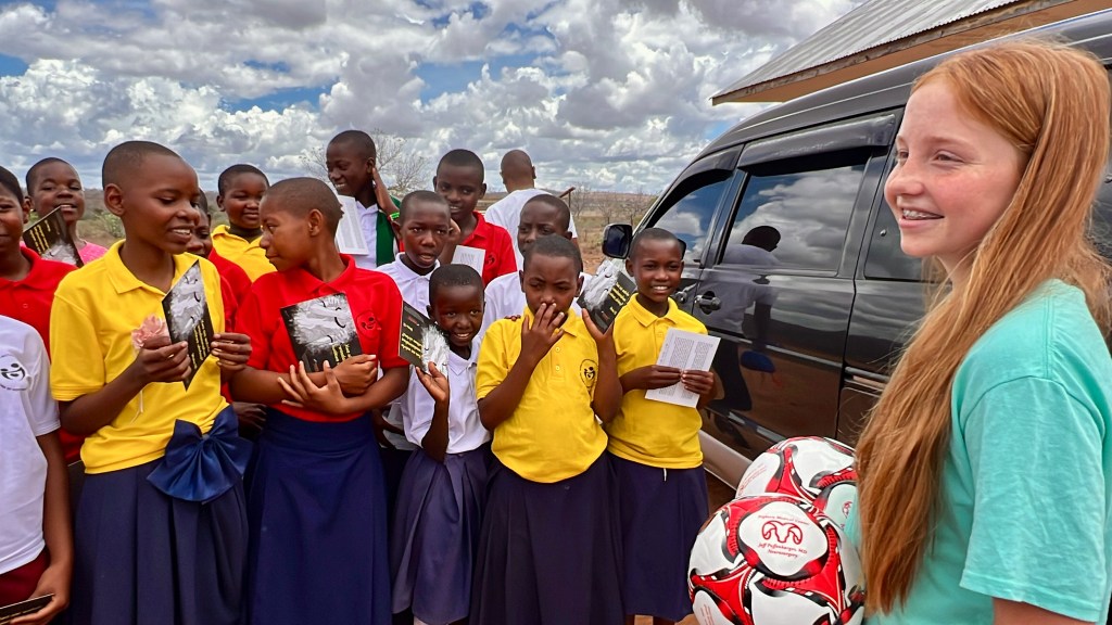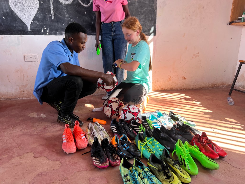 We sent our first shipment of equipment to the Kiegea A girls soccer team in August 2023. This shipment included three soccer balls, two soccer ball pumps, 25 pairs of soccer socks, and 25 athletic shirts. All of these donations were lightly used equipment collected from teammates and second hand clothing stores. Our first foundation trip was made in October 2023 by Brit Richards. In this trip, we visited the Kiegea A girls soccer team. We brought a suitcase full with 15 pairs of soccer cleats, 3 more soccer balls, and 4 more soccer ball pumps.